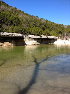 We live right by the Barton Creek Greenbelt that has hiking (nothing like Utah hiking) and when we have rain and aren't in a drought like this year has lots of water and little waterfalls and pool you can swim in. We were watching a friends dog, Mushu, and took her out with us to hike and explore the Greenbelt. It was so fun! Eric says next time he's going swimming in the pool of water ;)